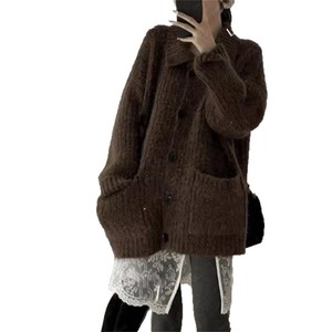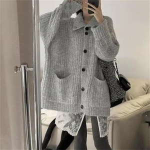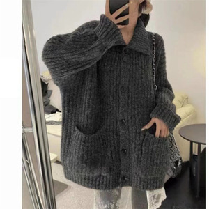 韩系穿搭慵懒风翻领毛衣秋冬女装高级感宽松软糯针织开衫上衣外套