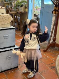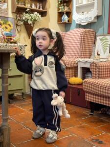 儿童童套装2025冬季新款加绒卡通兔子卫衣女宝宝可爱卫衣卫裤套装