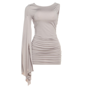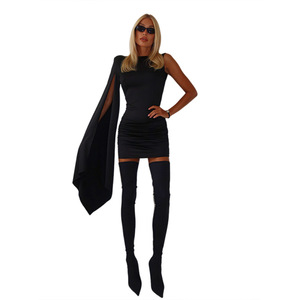 欧美风2025秋季外贸新款创意街头潮流不规则单袖露背紧身连衣裙女
