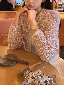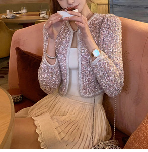 重工纱线门襟烫钻 洋气小版型针织开衫