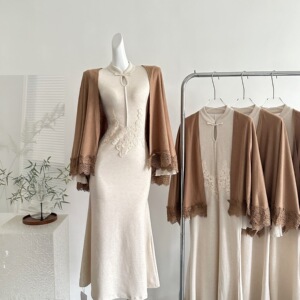 清冷新中式早秋连衣裙立领刺绣针织长裙开衫外套女2025秋季新款