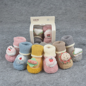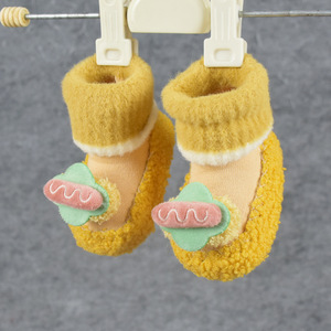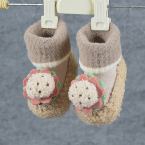 婴儿地板鞋袜冬季加绒加厚毛圈步前鞋子新生儿宝宝软底保暖地板袜
