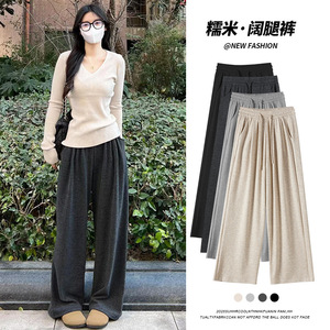 糯米裤阔腿裤女秋冬宽松垂感加绒长裤高腰显瘦拖地女裤卫裤休闲裤