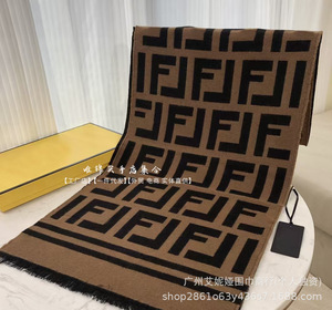 老花字母ff羊毛提花围巾女高级感fd羊绒双面披肩秋冬网红同款围脖