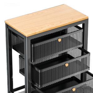 黑色【全钢木板大台面抽拉柜】6层33*42*95(五篮一板)♢