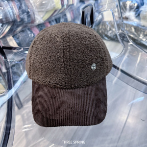 批发韩国2025年秋冬新款羊羔毛毛呢鸭舌帽子英伦复古大头围棒球帽