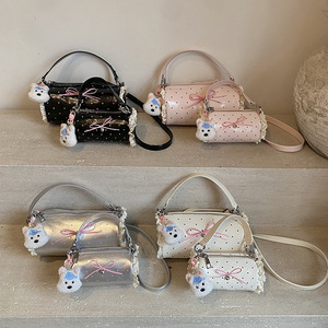 韩系蝴蝶结可爱少女水桶枕头女包百搭时尚手提迷你亲子儿童斜挎包