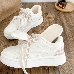 B2319 加绒/乳胶鞋垫/轻便小白鞋女百搭2025新款冬季保暖棉鞋板鞋