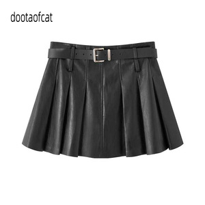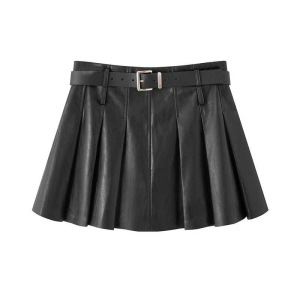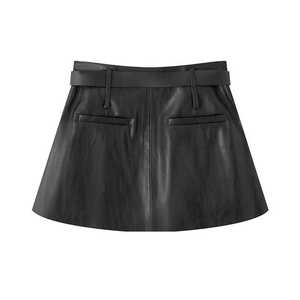 2025年冬季新款女装时尚甜美PU皮附腰带A字短裙子半身裙AR354118
