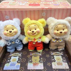 新品小熊维尼盲盒搪胶毛绒噗噗糖果熊玩偶公仔手办挂件礼物摆件