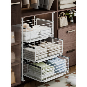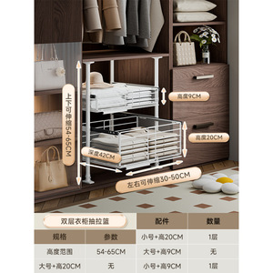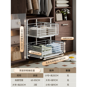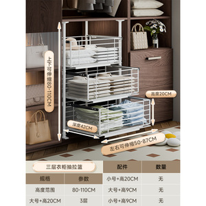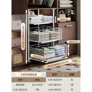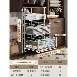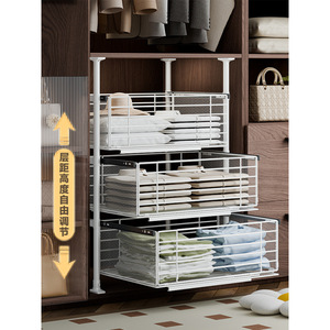 衣柜收纳分层拉篮抽屉式隔板顶天立地柜内衣服伸缩整理置物架