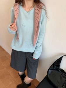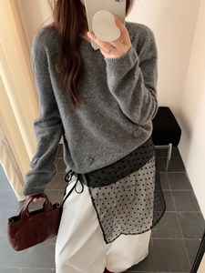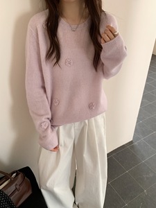 之言25秋冬女款羊毛衫韩系圆领手工刺绣立体花朵贝熊绒针织衫毛衣