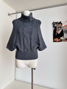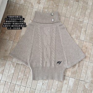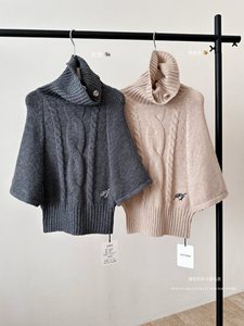 秋冬新款高领套头复古斗篷麻花毛衣女宽松慵懒风叠穿针织衫上衣潮