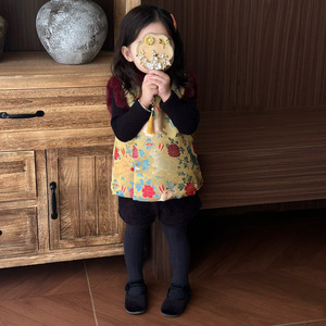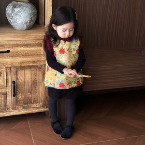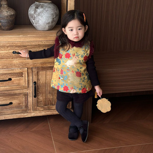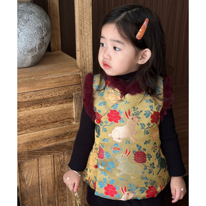 女童中秋汉服套装秋冬儿童国风立领提花小兔子马甲小女孩短裤唐装