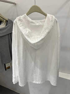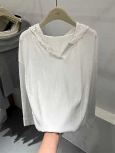 美式复古蕾丝连帽拼接长袖t恤女早秋新款慵懒风设计感打底衫上衣