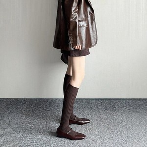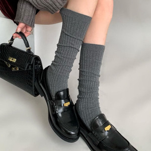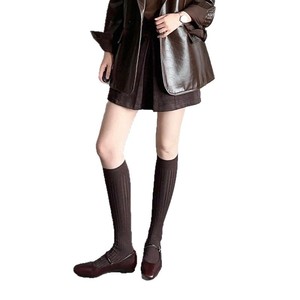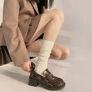 深棕色竖条纹小腿袜女秋冬时髦微压显瘦MIU系无骨双针羊毛长筒袜
