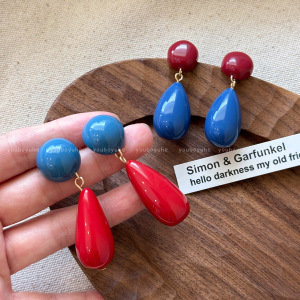 复古港风撞色水滴耳环女小众设计感夸张耳钉高级感气质显白耳饰品