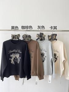 2025冬季新款辣妹风风圆领落肩字母印花卫衣蝴蝶结上衣女18369