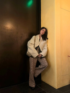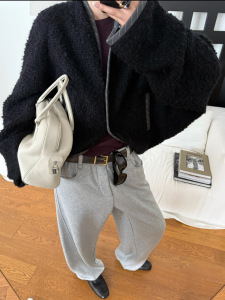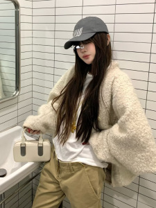 现货原厂面料迪丽热巴欧阳娜娜同款韩系慵懒风宽松落肩羊毛外套女
