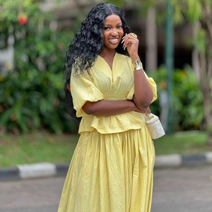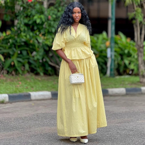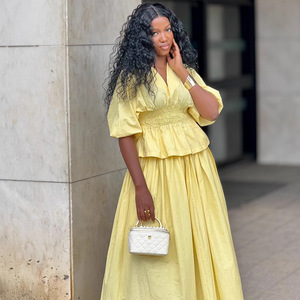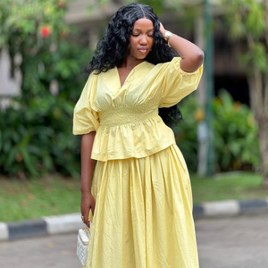欧美女装气质优雅纯色V领褶皱短款衬衣非洲高腰半身长裙时尚套装