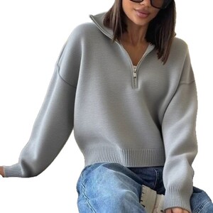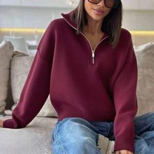 欧货半拉链立领毛衣女秋冬款宽松高级感跨境针织衫上衣女百搭外套