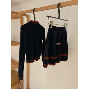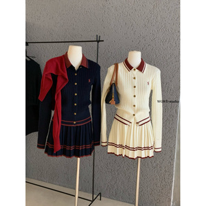 塞纳WGWE7072早秋小香风针织开衫女百褶毛衣裙子短款休闲两件套