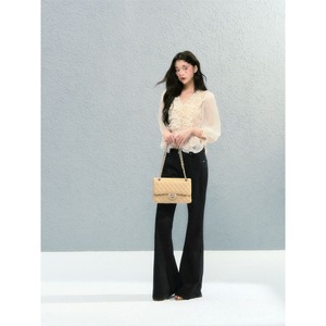 2025早秋新款时尚法式V领边压花雪纺衫女气质褶皱百搭泡泡袖上衣