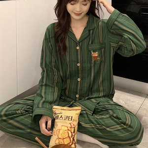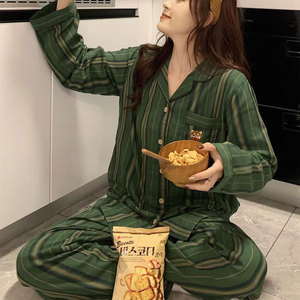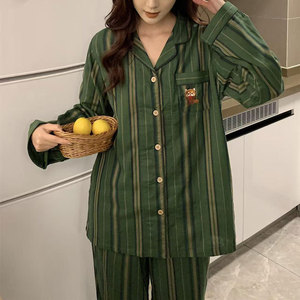 绿色小碗熊2025款纯棉长袖睡衣磨毛男女家居服休闲可外穿秋冬套装