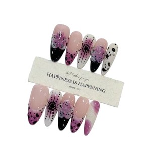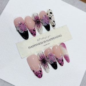 黛月达 纯手工穿戴甲秋冬新款B338全手绘雕花气质外贸款美甲贴片