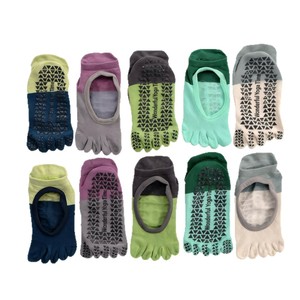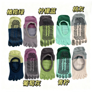 2025新款棉质渐变点胶瑜伽袜子防滑专业女五指袜普拉提袜分趾露背