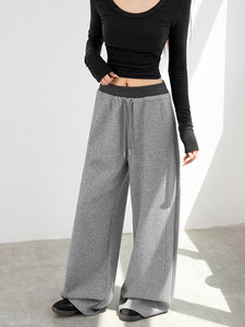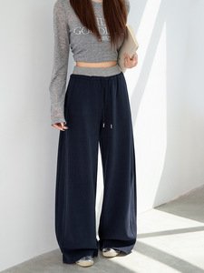 灰色运动裤女秋季2025新款休闲宽松阔腿裤束脚显瘦卫裤子