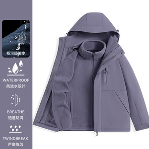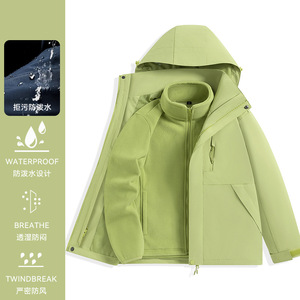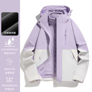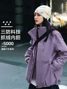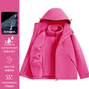 骆陀同款冲锋衣女三合一户外徒步运动机能防风防水软壳情侣外套男