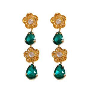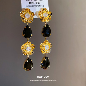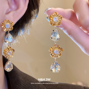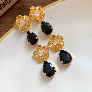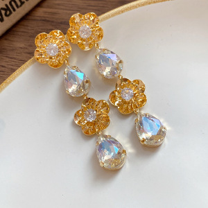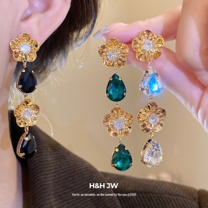18K真金电镀银针锆石花朵流苏耳环轻奢高级感耳钉复古气质耳饰女