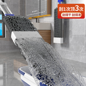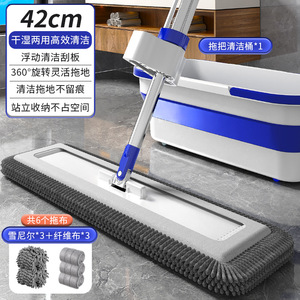 新款雪尼尔免手洗平板拖把加厚双布木地板魔术墩布大号带桶一拖净