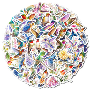 56张跨境新款水彩蜂鸟涂鸦贴纸亚马逊temu文艺花卉小鸟创意装饰贴