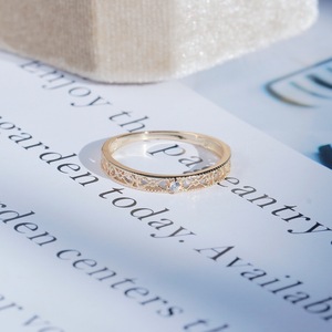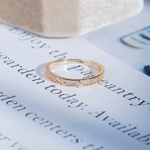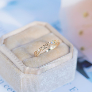 凰谨珠宝 韩版简约时尚通勤心形镂空花纹戒指女925银镀金锆石戒子