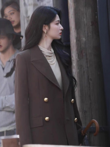 明星王楚然同款棕色西装外套女2025年早秋新款设计感小众西服套装