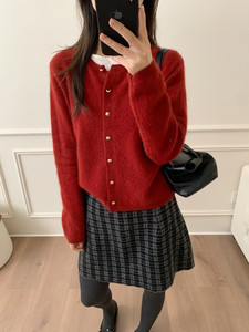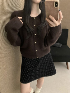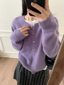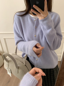 25秋冬季女装羊毛衫韩系高级感圆领月亮扣纯色浣熊绒针织开衫毛衣