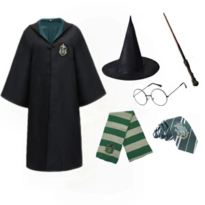 绿色外袍+徽章领带+金属眼镜+围巾+树脂棒+帽子