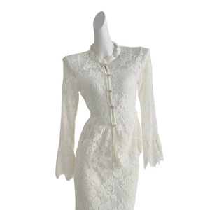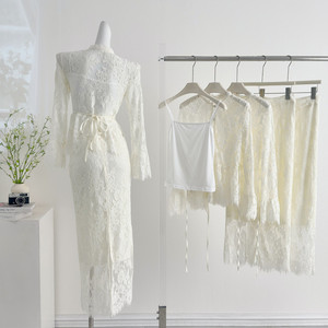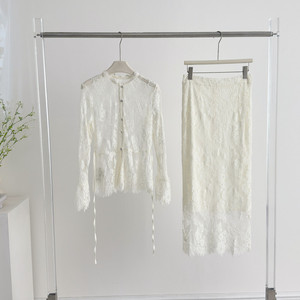 2025新款名媛跨境早秋优雅修身蕾丝套装长袖收腰直筒半身裙两件套