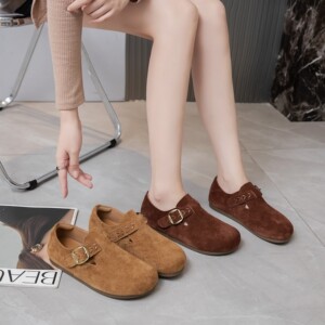 头层牛皮勃肯鞋女2025秋季新款一脚蹬平底孕妇单鞋百搭休闲豆豆鞋