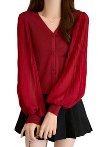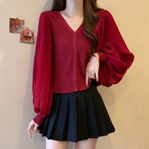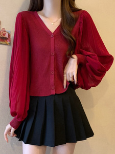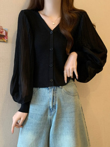 2025秋季新款韩系胖MM衬衫女泡泡针织衫收腰显瘦长袖上衣女A7476