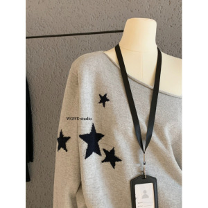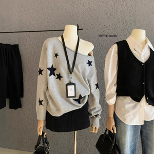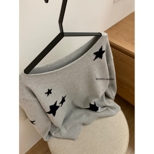 塞纳【WGWE】7170新款慵懒风斜肩毛衣宽松休闲辣妹露肩针织衫上衣