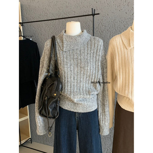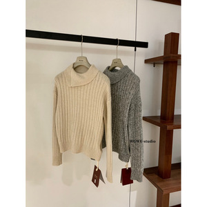 塞纳【WGWE】7198秋装2025新款翻领宽松套头毛衣针织衫