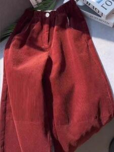 复古红色灯芯绒阔腿裤子女秋冬加厚2025新款小个子松紧高腰休闲裤