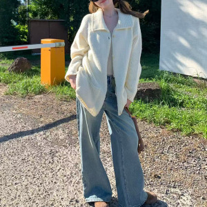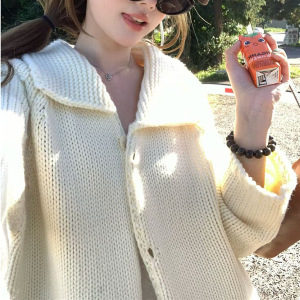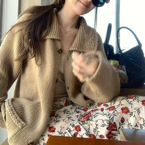 羊毛混纺针织开衫中长款大翻领毛衣外套+刺绣花朵半裙