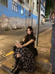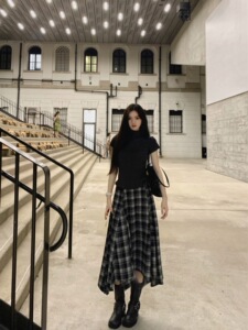 famouswang2025年早秋季新款气质姐姐不规则设计感小众格子半身裙