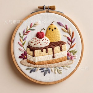 新品原创刺绣diy手工材料包蛋糕甜点Embroidery亚马逊热跨境英文