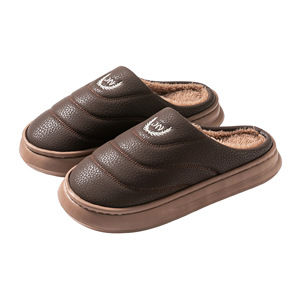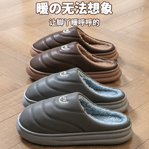 跨境特大码男士防水棉拖鞋室内居家厚底防滑加绒保暖皮革毛绒拖鞋
