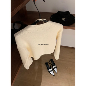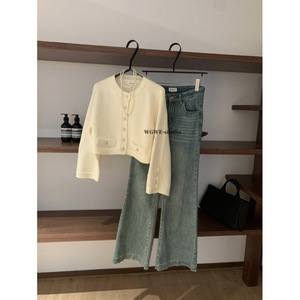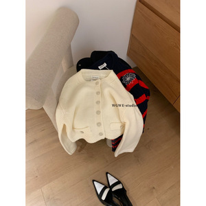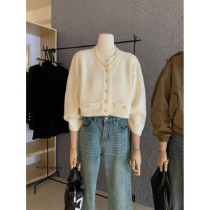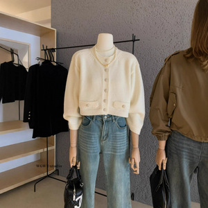 塞纳WGWE7089韩系贵气小香风山茶花纽扣针织开衫长袖纹理感毛衣